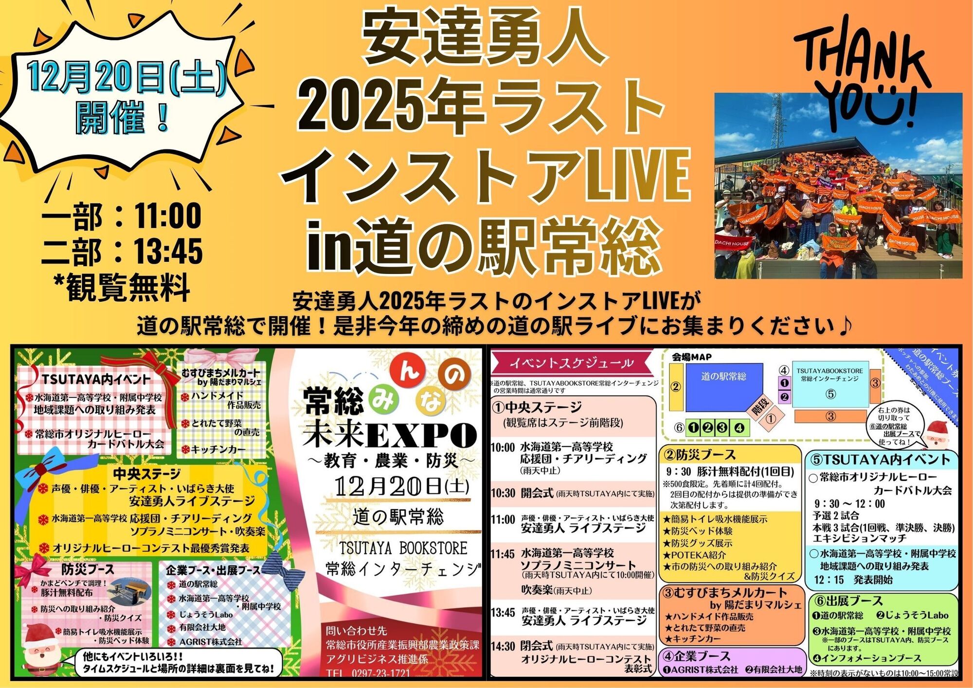 2025.12.20(Sat) LIVE 12/20(土)安達勇人ラストインストアLIVE in道の駅常総開催決定! 12/20(土)安達勇人ラストインストアLIVE in道の駅常総開催決定! 常総みんなの未来EXPOも当日開催!