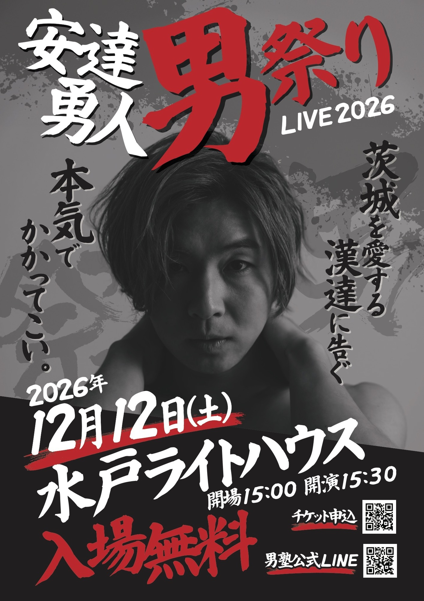 【安達勇人男祭り2026開催のご案内*男性限定ライブ】