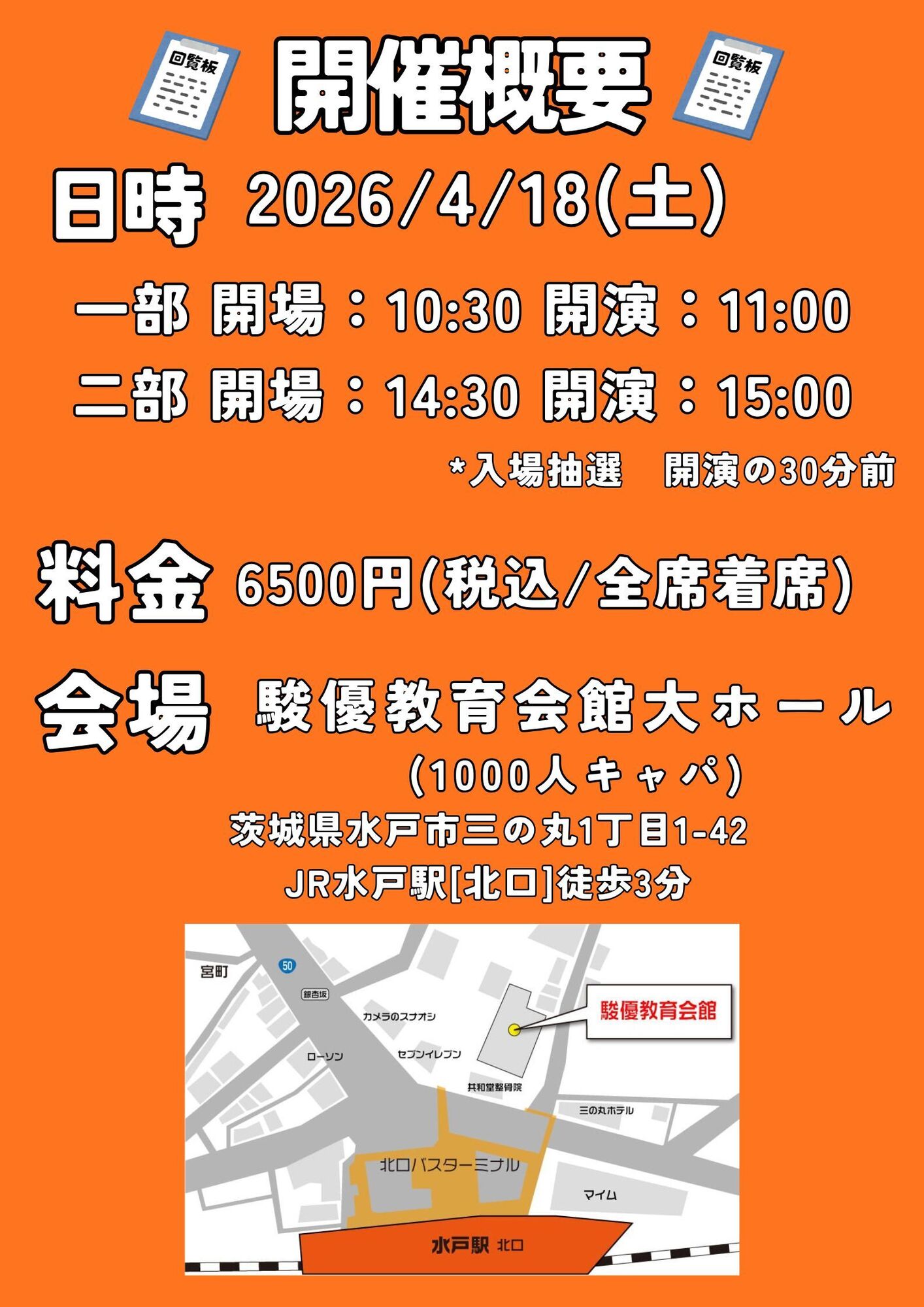 会場:駿優教育会館大ホール(キャパ1000席) 茨城県水戸市三の丸1丁目1-42