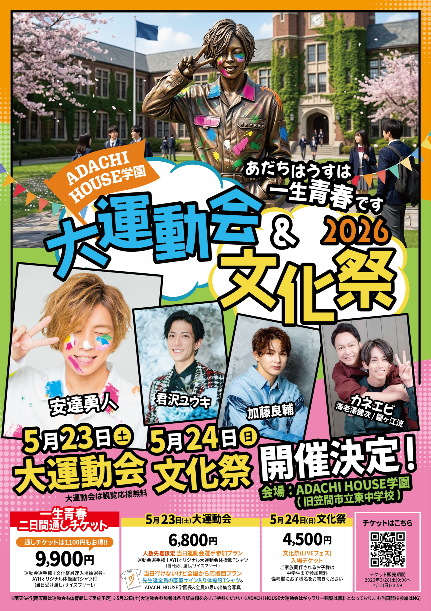 ADACHI HOUSE大運動会&文化祭2026~あだちはうすは一生青春です~ 2026年5月23(土)、5月24(日)開催決定!