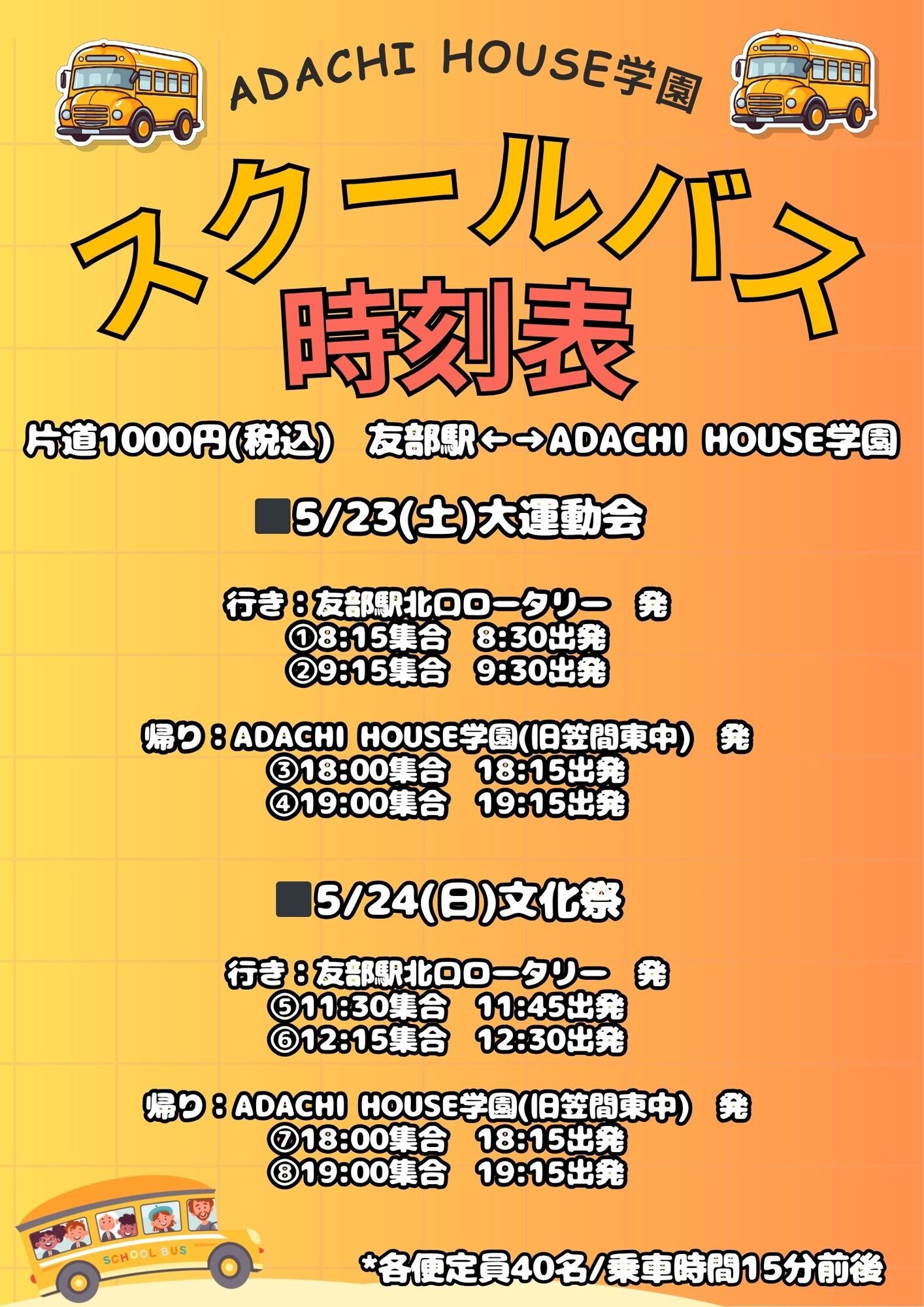 さらになんとADACHI HOUSE学園スクールバス(有料)の運行がなんと決定!!!!