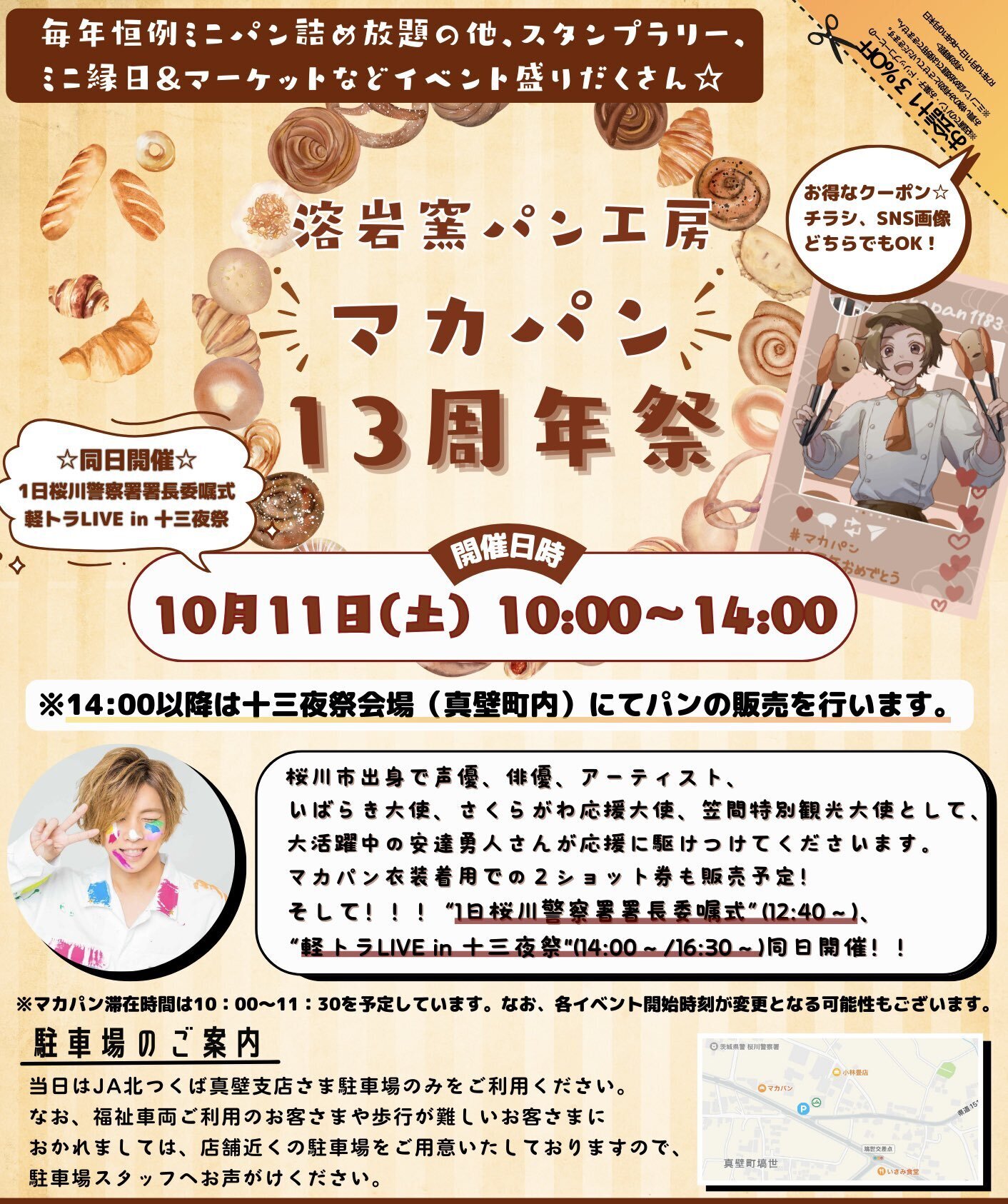 10/11(土)安達勇人桜川市一日警察署長&スペシャルLIVE &マカパン一日店長開催決定!
