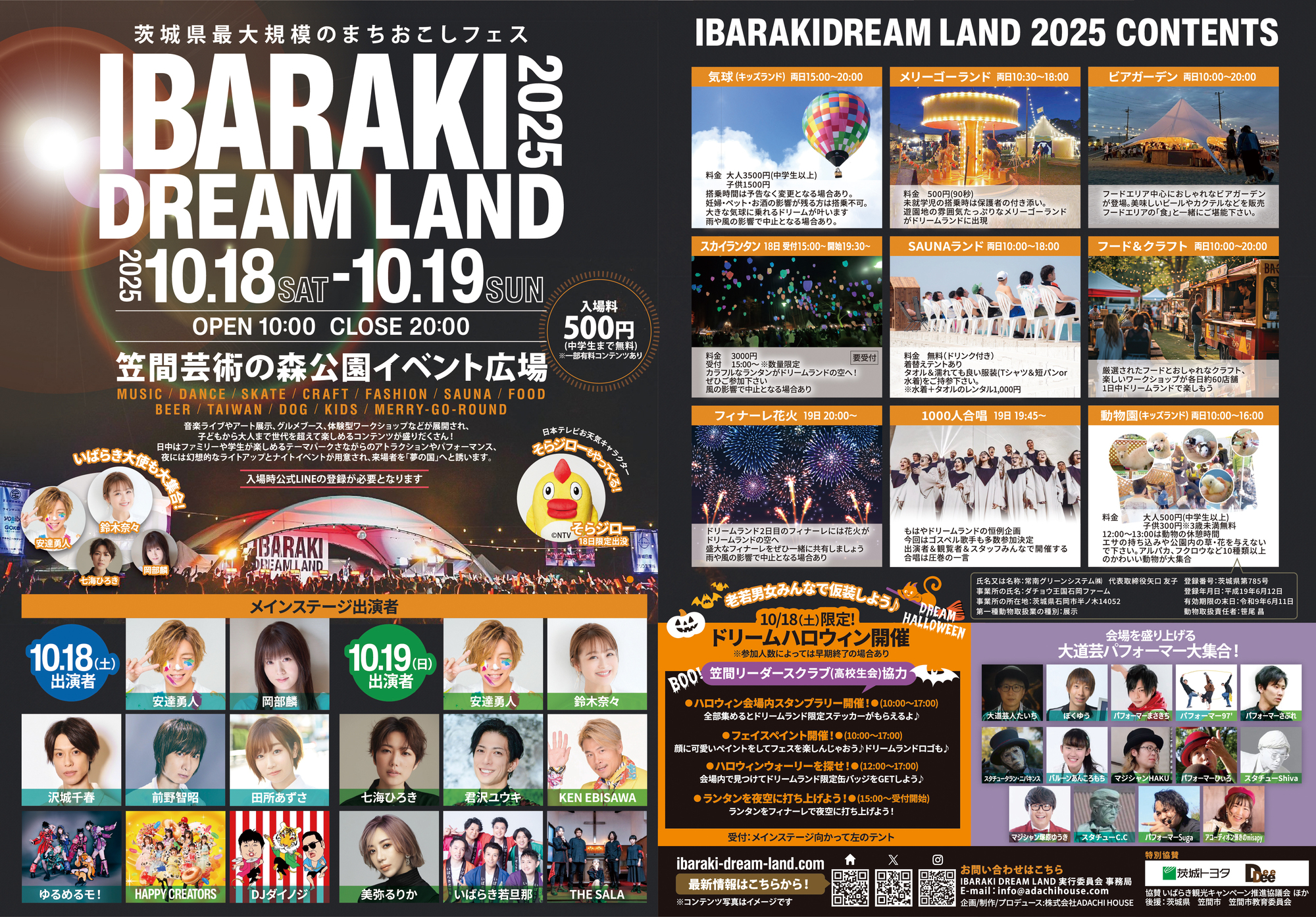 10/18(土)、19日(日)IBARAKI DREAM LAND2025 in笠間芸術の森公園開催決定!