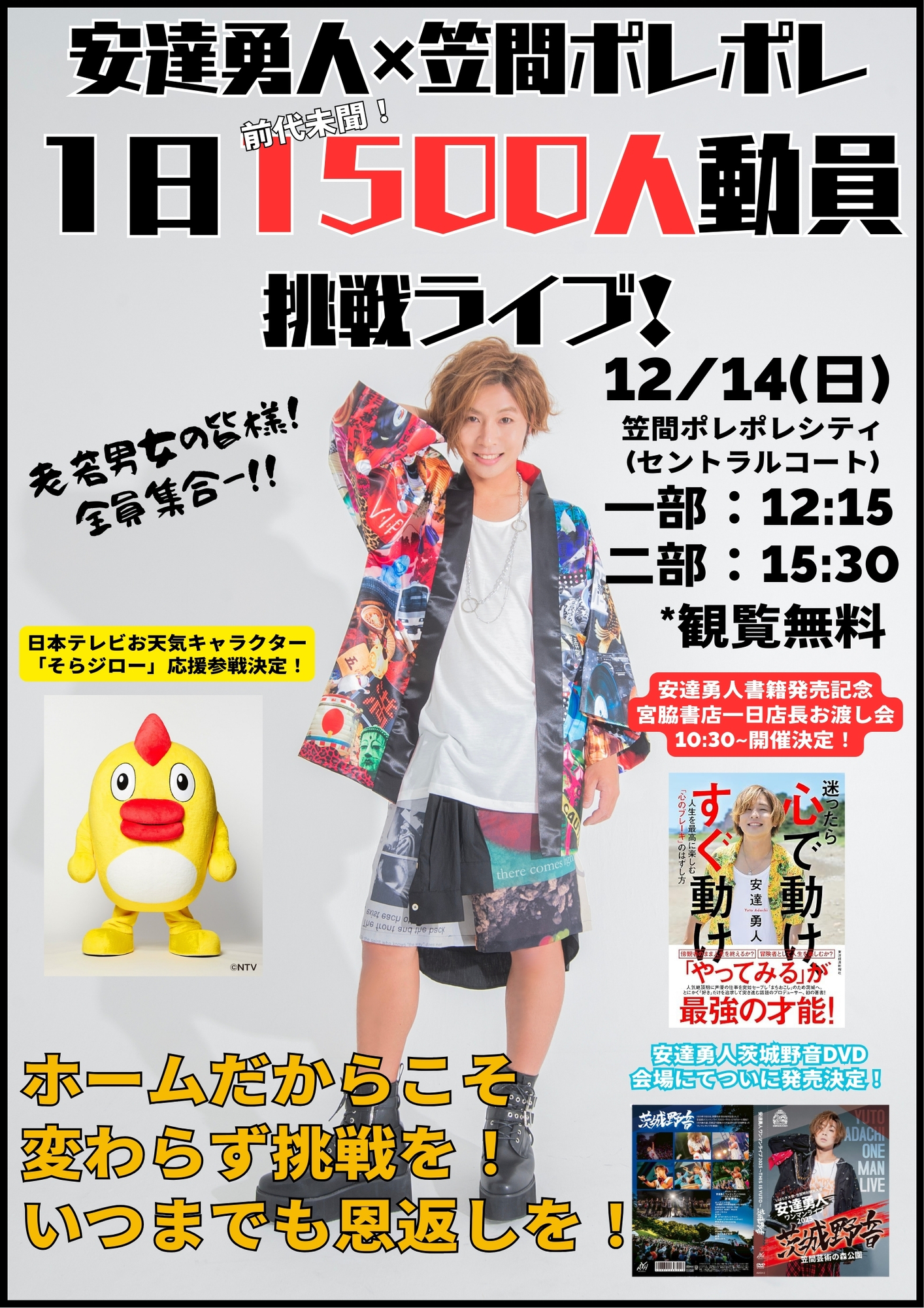 2025.12.14(Sun) LIVE 12/14(日)安達勇人1500人動員インストアLIVE in笠間ポレポレ 12/14(日)安達勇人1500人動員インストアLIVE in笠間ポレポレ開催決定!