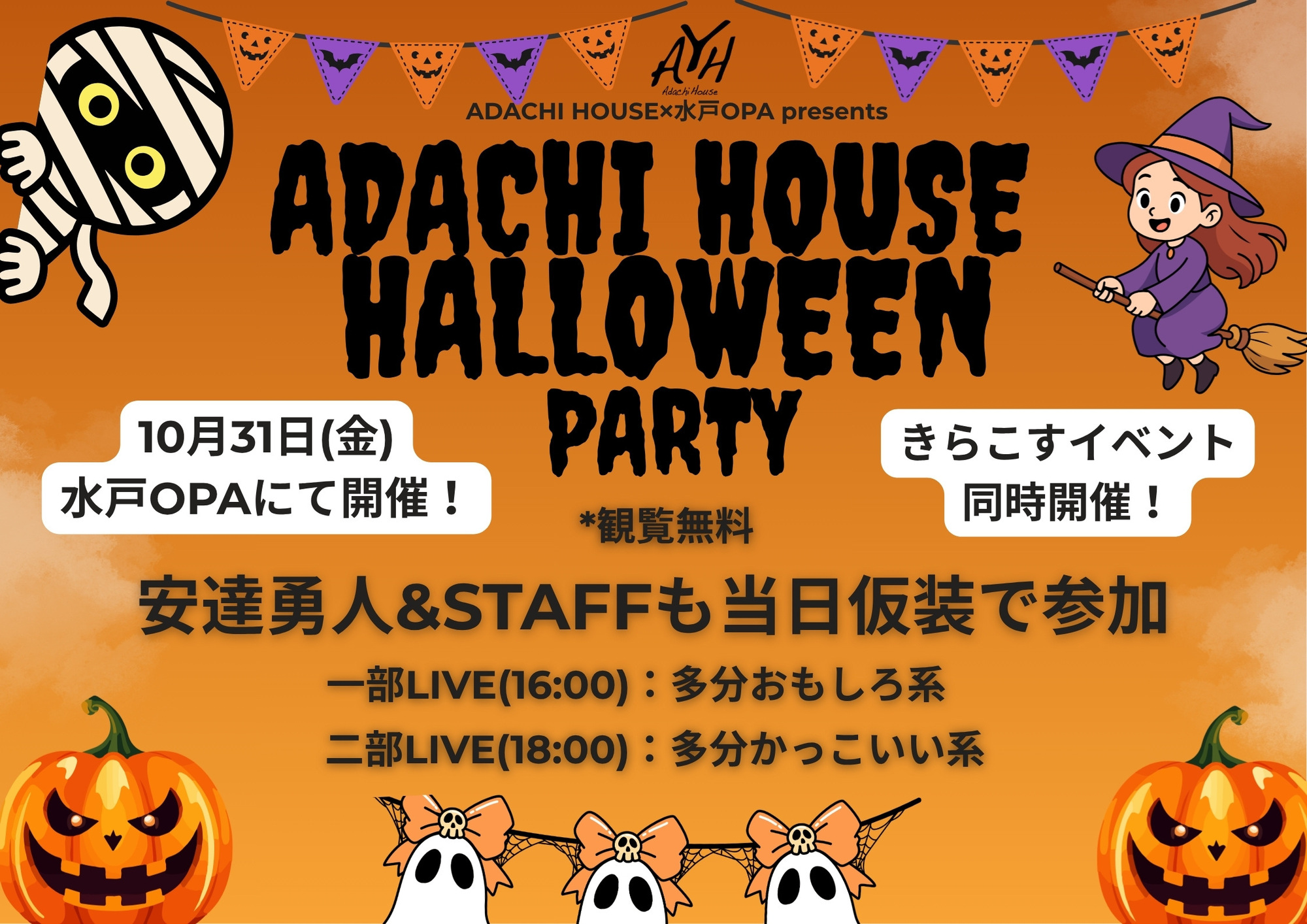 *安達勇人やSTAFFは仮装での参加になります(1部:多分面白い系/二部:多分かっこいい系)
